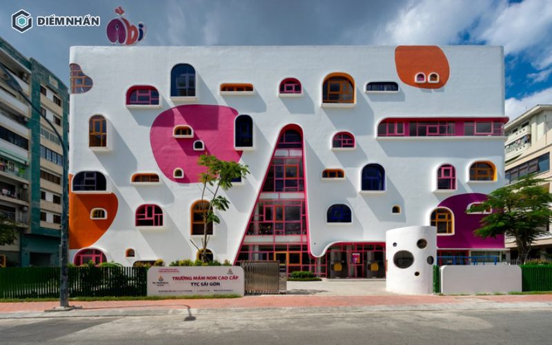 - Sáng tạo không gian: Về không gian các khu vực check-in, bảng biểu được thiết kế theo phong cách hiện đại và phù hợp với lứa tuổi mầm non.